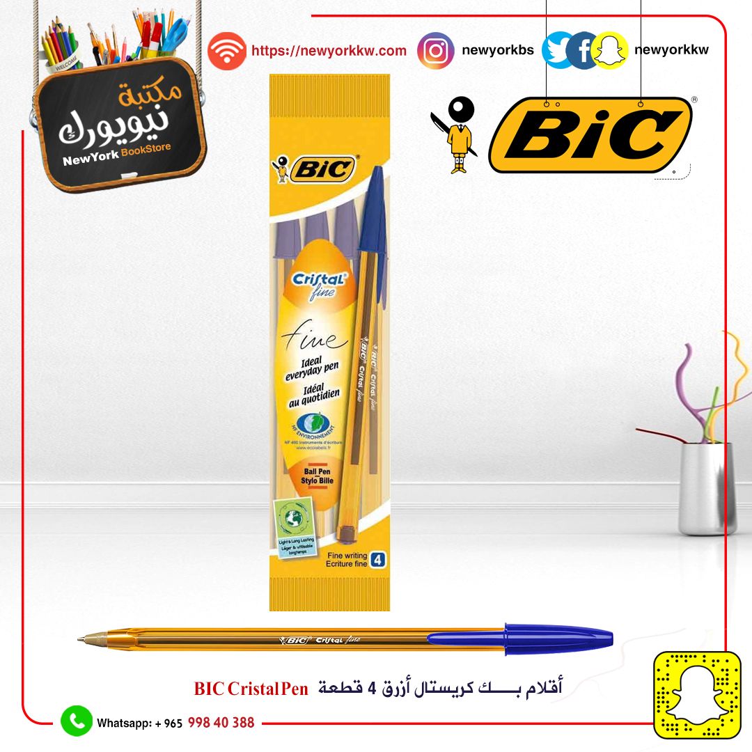 أقلام حبر جاف كريستال أزرق 0.8 مم 4 قطعة بك Bic