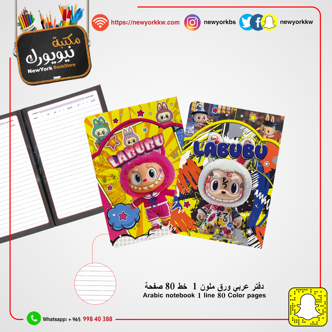دفتر عربي لابوبو ملون 1 خط 80 صفحة | Labubu Arabic notebook, colored, 1 line, 80 pages