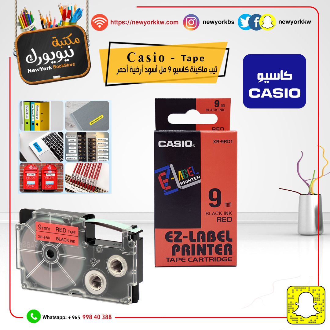 نوع الشريط القياسي كاسيو عرض الشريط: 9 ملم لون الشريط: أسود على أحمر الطول: 8 أمتار