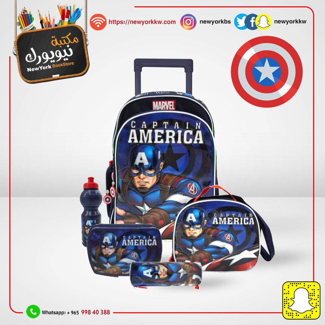 شنطة عربانة Captain America روضة 5 قطع قياس 14