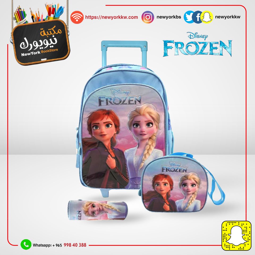 شنطة عربانة Frozen مع مقلمة وشنطة أكل قياس 18